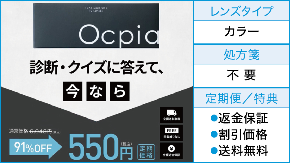 《メンズ専用カラコン》Ocpia(オクピア) カラー メンズカラコン「Ocpia オクピア」は「女性がもう一度、会いたくなる瞳。」というブランドコンセプトの元に誕生しました。 POINT 話題のメンズ専用カラコン 人間工学に基づいて男性の目に最適化 女性93%(3000人対 […] 続きを読む
