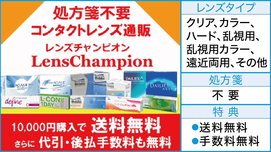 LensCampion(レンズチャンピオン) クリアハードカラー乱視用乱視用カラー遠近両用その他 LensCampion(レンズチャンピオン)なら全品処方箋不要で国内正規品です。幅広いジャンルのコンタクトレンズを扱っています。 POINT 当日発送の商品が多い。全て国内正規品。 乱視用や遠近両用やカラコン・ハードコン […] 続きを読む